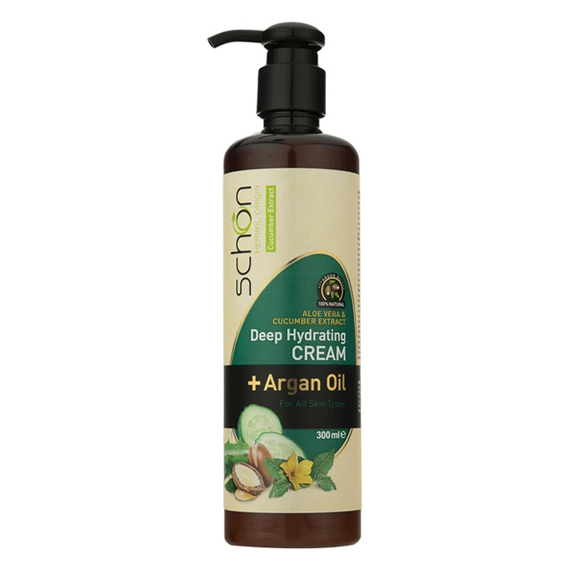 کرم مرطوب‌کننده شون، مدل Cucumber، مناسب انواع پوست، با عصاره خیار، حاوی روغن آرگان، مناسب استفاده برای دست و صورت، حجم 300 میلی‌لیتر