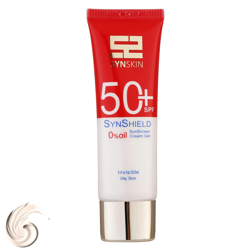 ژل کرم ضدآفتاب ساین اسکین بدون رنگ SPF50 مدل SynShield، مناسب پوستهای چرب، حجم 50 میلیلیتر