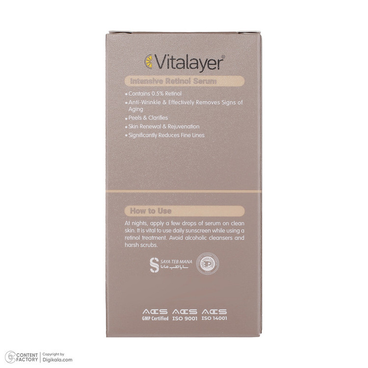 ضدچروک قوی و برطرفکننده علائم پیری حاوی 0.5 درصد رتینول خالص بازسازنده و جوانساز کاهش چشمگیر چروکهای ریز لایه بردار و شفاف کننده