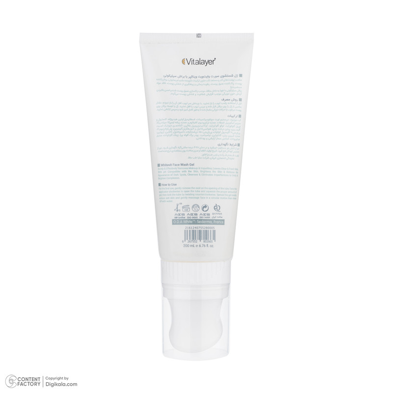 ژل شستشوی صورت ویتالیر مدل وایت ویت مناسب برای پوست‌های لک‌دار حجم 200 میلی لیتر