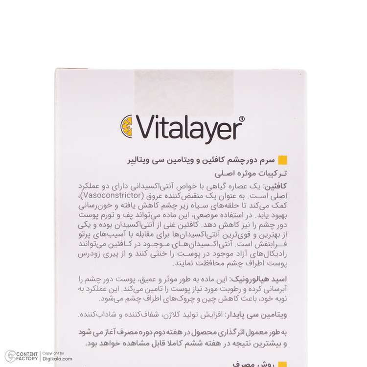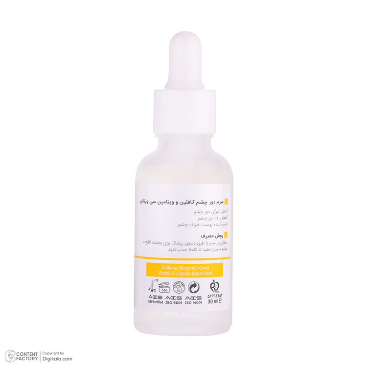 سرم روشن کننده دور چشم ویتالیر مدل ویتامین C مناسب برای انواع پوست حجم 30 میلی لیتر
