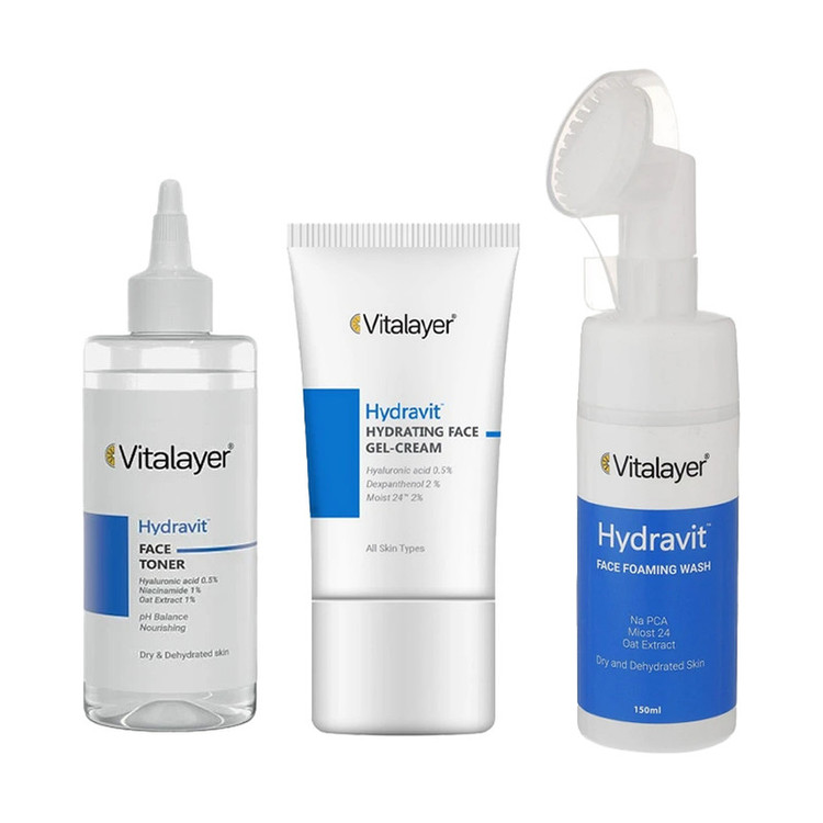 اقلام پک: فوم شستشوی صورت مناسب برای پوست خشک، تونر صورت مناسب برای پوست خشک، ژل کرم آبرسان و مرطوب کننده انواع پوست