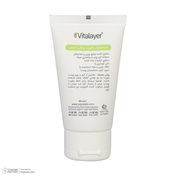 کرم ضد جوش رنگی ویتالیر سری Activit مدل Natural Tinted حجم 40 میلی لیتر
