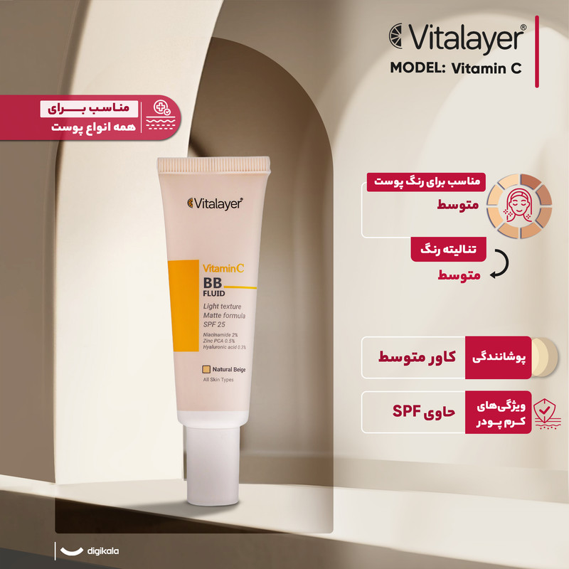 با کمک براش، بیوتیبلندر یا انگشتان خود، مقداری کرم پودر روی صورت پخش کنید.