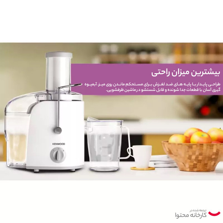 مخزن تفاله :دارد، جنس تیغه (صافی) :استیل ضدزنگ، تنظیمات سرعت :دارد، دارای کنترل چرخشی، قابلیت شستشوی قطعات در ماشین ظرفشویی، محفظه برای جمع كردن سیم برق