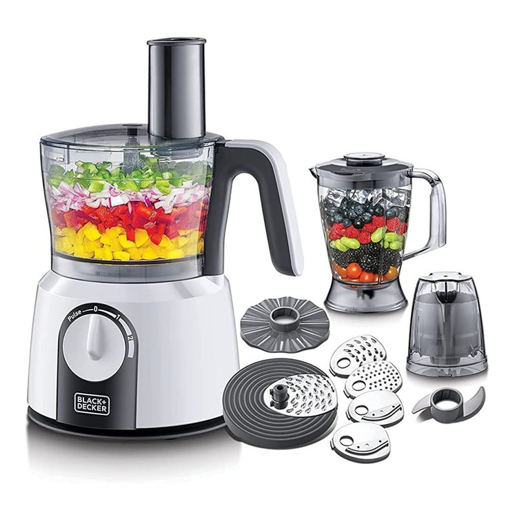 توان مصرفی 1000 وات، جنس بدنه پلاستیک، جنس تیغه استیل ضدزنگ / 4 پره، تعداد تنظیمات سرعت 2 سرعته، عملکرد پالس، گنجایش ظرف غذاساز 1.2 لیتر، گنجایش پارچ مخلوط کن 1 لیتر، آسیاب، تعداد دیسک رنده 5 عدد