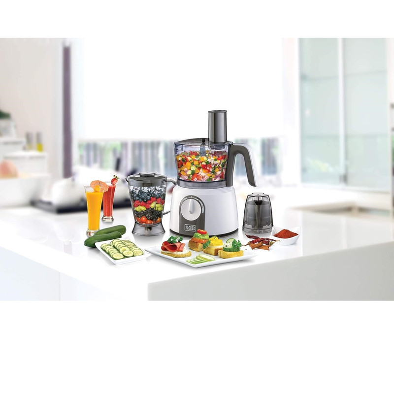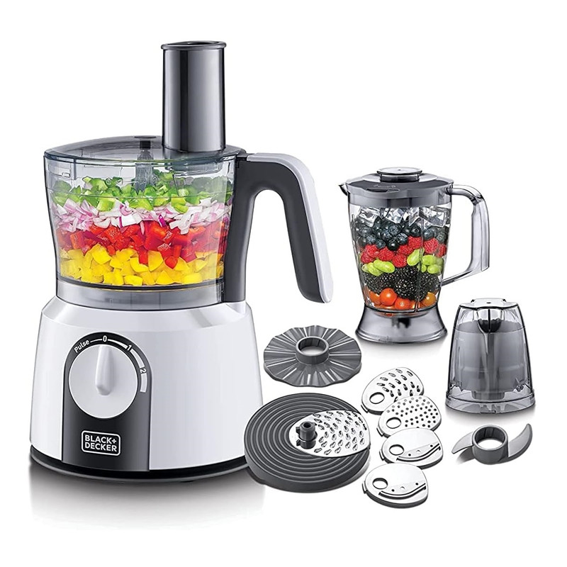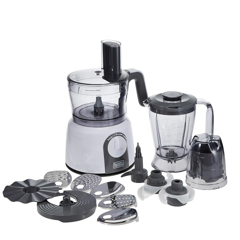 توان مصرفی 1000 وات، جنس بدنه پلاستیک، جنس تیغه استیل ضدزنگ / 4 پره، تعداد تنظیمات سرعت 2 سرعته، عملکرد پالس، گنجایش ظرف غذاساز 1.2 لیتر، گنجایش پارچ مخلوط کن 1 لیتر، آسیاب، تعداد دیسک رنده 5 عدد