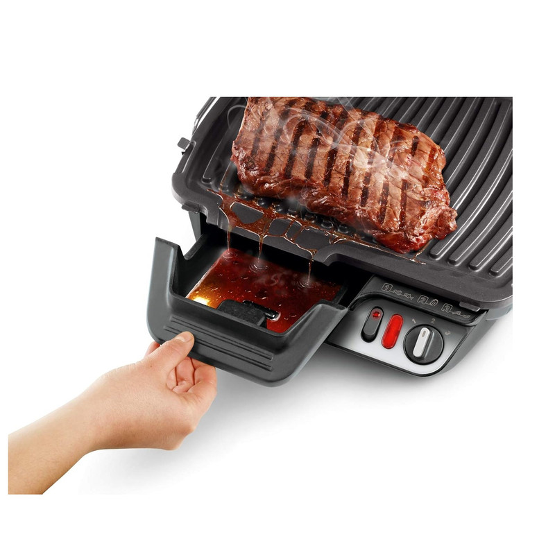 گریل تفال با داشتن سطح وسیع برای کباب کردن مواد غذایی یکی از بهترین گزینه ها برای خرید است. طیف وسیعی از تنظیمات دما روی این گریل قرار داده شده است که دست شما را برای تنظیمات دلخواهتان باز میگذارد . گریل تفال با توان 2000 وات هم از بالا و هم پایین توانایی گرمادهی و تست مواد غذایی را با بهترین کیفیت دارد . صفحه گریل این مدل دارای ابعاد 30 در 20 سانتیمتر میباشد که برای گریل کردن انواع مواد غذایی کافی به نظر میرسد . این دستگاه از جنس آلومینوم با روکش مخصوص نچسب طراحی شده و بخش داخلی آن به راحتی قابل جدا شدن بوده و نظافت آن بسیار ساده میباشد . دستگاه گریل GC306028 تفال ، دارای دو صفحهی شیاردار چدنی در قسمت بالایی و زیرین دستگاه است و برای تهیهی گریل انواع موادغذایی و گوشت و همچنین درستکردن ساندویچ استفاده میشود . گریل GC3060 تنظیمات و برنامه های پخت کاملی را دارا میباشد . سطح سینی گریل برقی تفال به صورت شیب دار طراحی شده و موجب میشود روغن مضر غذا حین پخت کشیده شود و درون ظرف مخصوص جمع آوری روغن ریخته شود .گریل تفال مدل GC306028 یک محصول خوش ساخت و بسیار با کیفیت در سایز متوسط می باشد که چهار کاره بحساب می آید و از توانایی انجام پخت گریل، توستر، باربیکیو و ساندویچ سازی آن هم تنها در 2 دقیقه برخوردار است و می توان با توجه به قابلیت تنظیم حرارتی که برای این گریل در نظر گرفته شده است، غذای مورد نظر خودتان را برشته، آبدار و یا معمولی پخت نمایید. گریل GC3060 تفال از قدرت 2000 واتی در کنار قابلیت یخ زدایی مواد غذایی و جلوگیری از خشک شدن آن ها و تایمر پخت غذا بهره مند بوده و می توانید حتی بدون معطلی در آن از مواد غذایی فریز شده و کاملا یخ زده نیز استفاده نمایید .