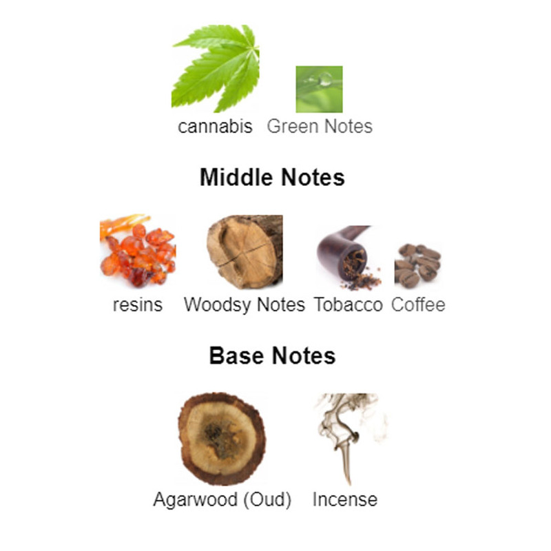 نت میانی: تنباکو ، روایح چوبی، صمغ گیاهی ، قهوه