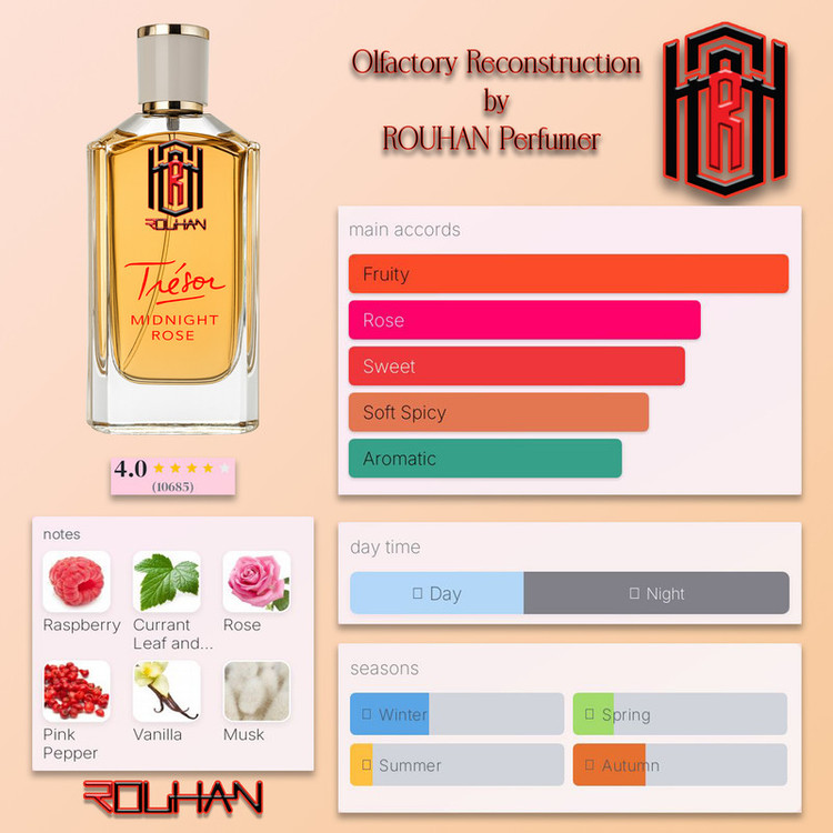 ) | رز مطلق (Rose absolute)، یاسمین (Jasmine)، گل صدتومانی (Peony)، فلفل صورتی (Pink Pepper) | قلبی رمانتیک و زنانه با ترکیب گلها و کمی ادویه |