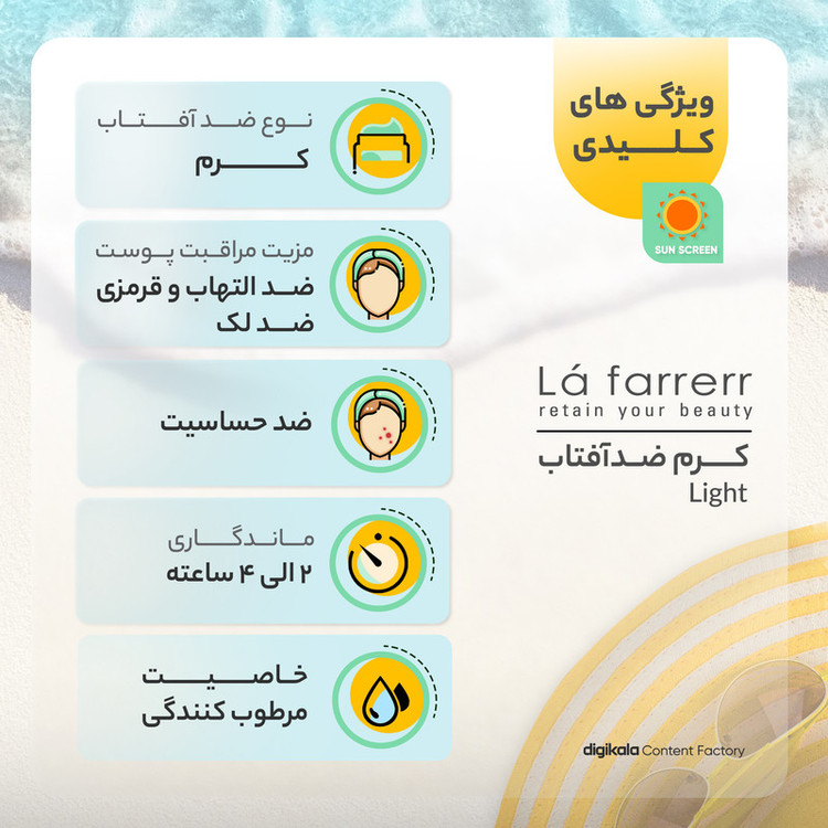 کرم ضدآفتاب و ضدلک رنگی لافارر مدل SPF40-Light، مناسب پوست‌های خشک و معمولی، حجم 40 میلی‌لیتر