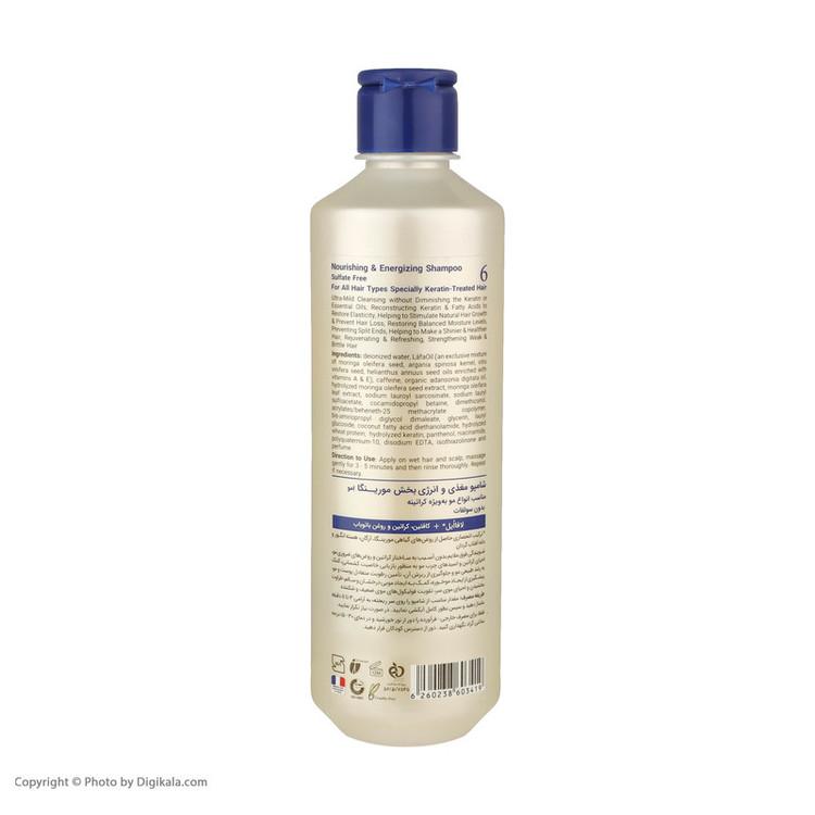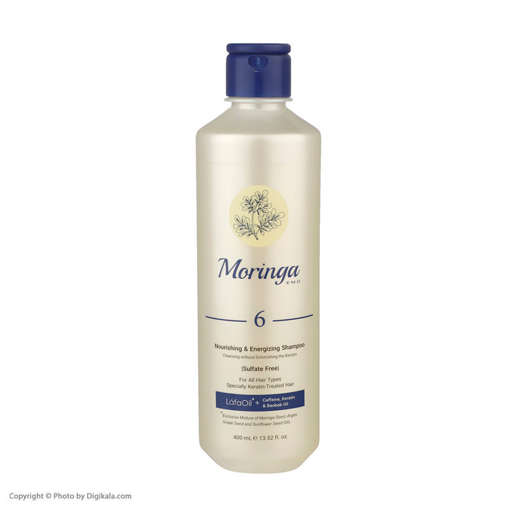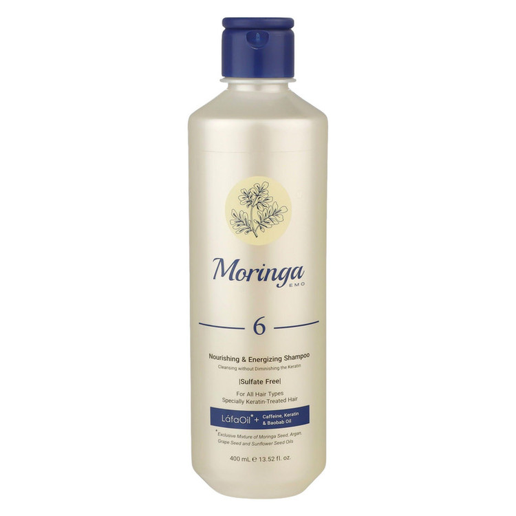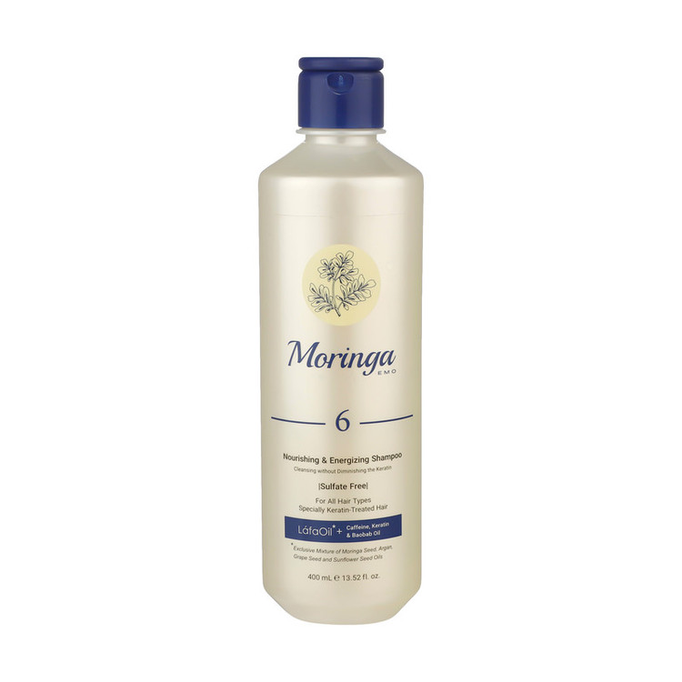 شامپو بدون سولفات مورینگا اِمو مدل 6 انواع مو به ویژه کراتینه 400 میلیلیتر