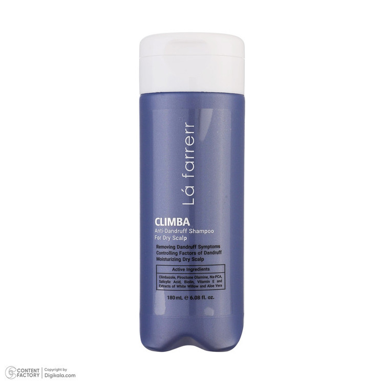 شامپو ضد شوره مو لافارر مدل کلیمبا مناسب برای انواع مو و پوست سر خشک حجم 180 میلی لیتر