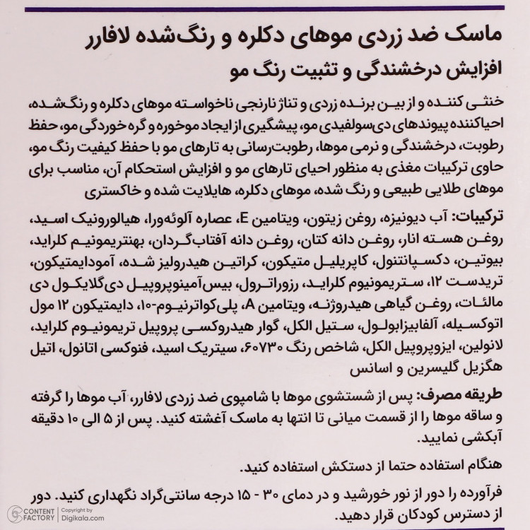 نوع ماسک و مراقبت مو: تثبیت کننده رنگ مو , تقویت کننده , نرم کننده , ترمیم کننده , مرطوب کننده
