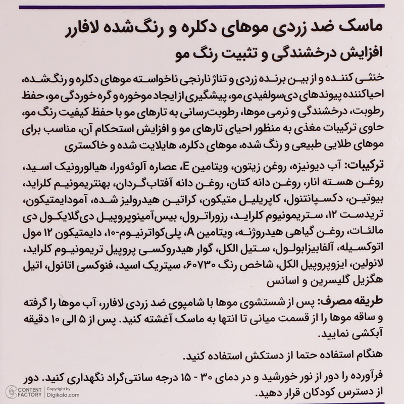 نوع ماسک و مراقبت مو: تثبیت کننده رنگ مو , تقویت کننده , نرم کننده , ترمیم کننده , مرطوب کننده
