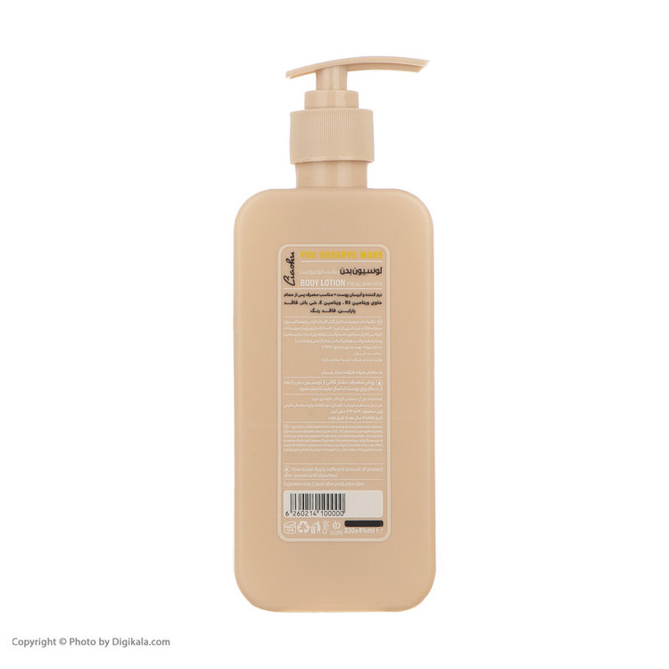 حاوی ویتامین B3، ویتامین E، روغن آرگان، شی باتر، فاقد پارابن، فاقد رنگ / لوسیون بدن با خاصیت نرم کنندگی و آبرسانی فوق العاده مناسب مصرف پس از حمام برای انواع پوست