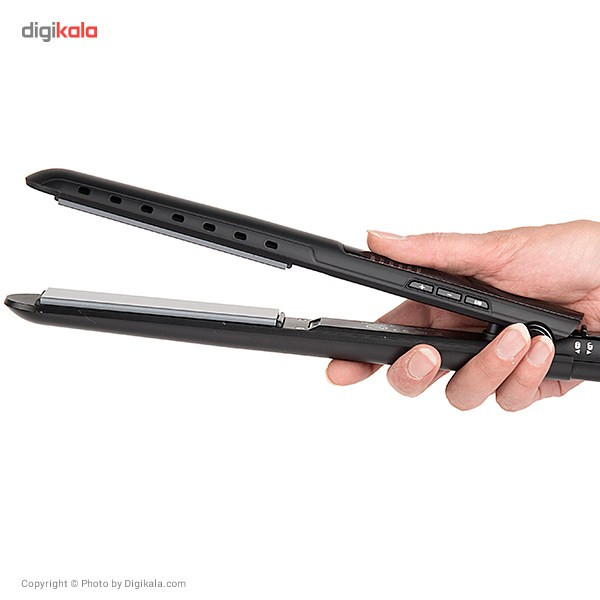 اتو موی «سورکر» (Surker) مدل «SK-947» صفحاتی سرامیکی با قابلیت تنظیم دما دارد. این محصول دارای صفحاتی آلومینیومی پوشش داده شده با سرامیک است که دما را به شکل یکسان، در طول صفحات پخش کرده و از آسیب به مو جلوگیری میکند. عرض این صفحات 2.5 سانتیمتر و طول آنها 11 سانتیمتر است که باعث میشود این اتو مو برای موهای پرپشت و بلند مناسب باشد. روی بدنه، سه دکمه دیده میشود که یک دکمه برای خاموش و روشنکردن اتو مو و دو دکمهی دیگر برای تغییر دما استفاده میشود. دمای اتو مو را میتوان از 155 درجهی سانتیگراد تا 230 درجه تغییر داد. این تغییرات در بازههای 15 درجهای و در 6 دما امکانپذیر است. دمای تنظیمشده توسط نشانگرهای قرمزی که در کنار اعداد قرار دارند، نشان داده میشوند. در قسمت انتهایی اتو مو، قفل صفحات قرار دارد که دو صفحه را روی یکدیگر قفل میکند. سیم اتو مو 2 متر طول دارد و در محل اتصال به اتو، داری قابلیت چرخش 360 درجه است که همهی اینها استفاده از آن را آسانتر میکند. در قسمت انتهایی این سیم، حلقهای پلاستیکی، مخصوص آویزانکردن اتو مو تعبیه شده است. به این ترتیب هنگامیکه صفحهها داغ هستند، جهت ایمنی بیشتر میتوان اتو مو را آویزان کرد. به طور خلاصه Surker SK-947 دارای صفحات سرامیکی، دمای 155 تا 230 درجه، قابلیت تغییر دما در 6 وضعیت، طول سیم 2 متر، قفل صفحهها و سیم گردان است.