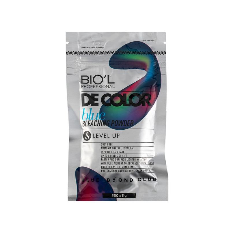 پودر دکلره آبی بیول ، با توجه به روش مصرف ارایه شده ،که داخل محفظه قرار دارد ، می تواند پایه رنگی تارهای مو را ، به میزان 7 تا 8 پایه روشن تر نماید .