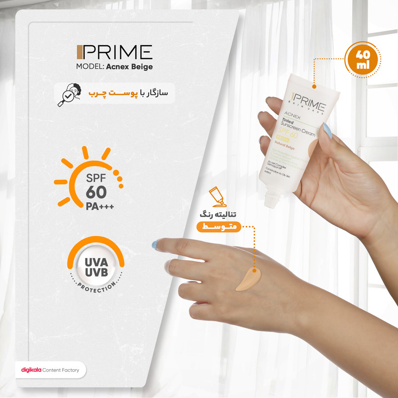 راهنمای استفاده : 20 دقیقه قبل از خروج از منزل کرم ضد آفتاب رنگی فاقد چربی پرایم SPF60 را مصرف نمایید.