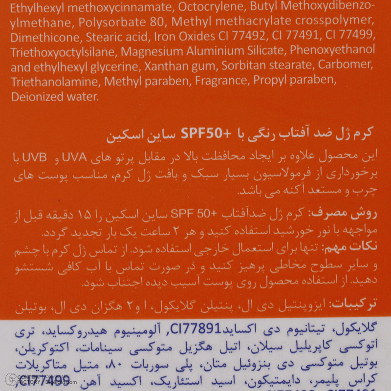 راهنمای استفاده : حداقل 15 دقیقه قبل از مواجهه با نور خورشید به اندازه دو انگشت از کرم ژل ضدآفتاب ساین اسکین را روی پوست صورت و گردن استفاده نمایید. توجه داشته باشید که با وجود مقاومت این محصول در برابر شستشو و تعریق، توصیه میشود هر دو ساعت یکبار آن را تجدید کنید.