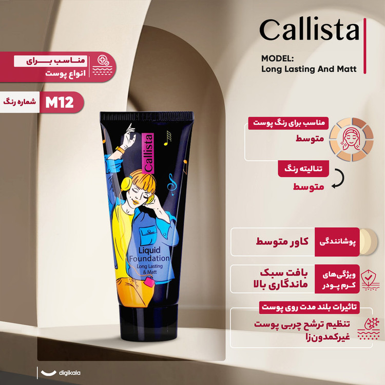 کرم پودر کالیستا مدل Long Lasting And Matt شماره M12 حجم 35 میلی لیتر