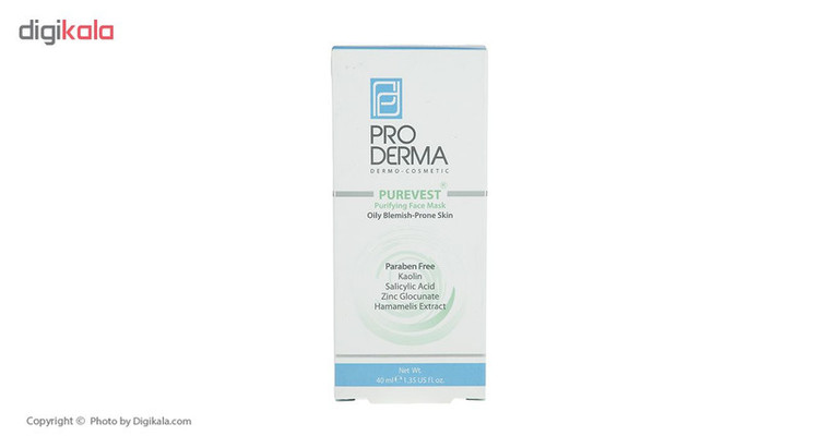 ماسک پاکسازی کننده پوست صورت پرودرما مدل Purevest حجم 40 میلی لیتر