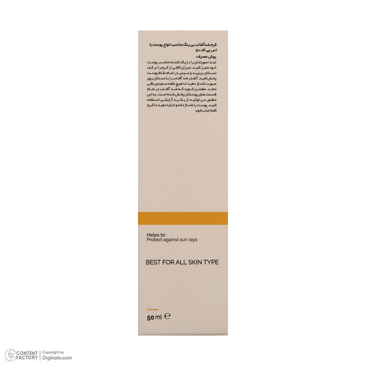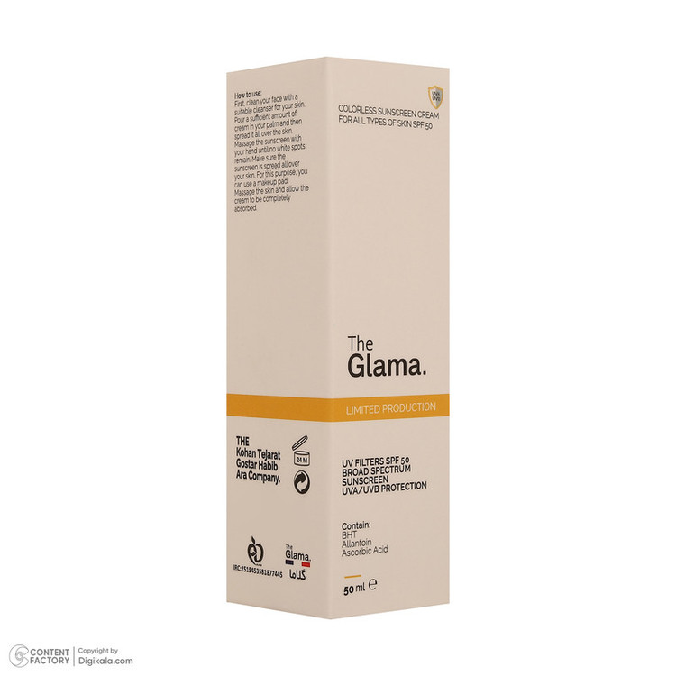 کرم ضد آفتاب بی‌رنگ دست و صورت گلاما SPF 50 مدل Broad Spectrum ‌محافظ UVA ، UVB مناسب برای انواع پوست حجم 50 میلی‌ لیتر