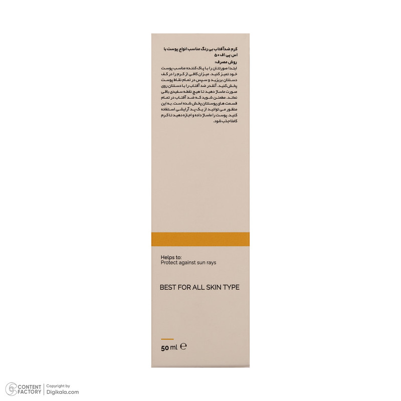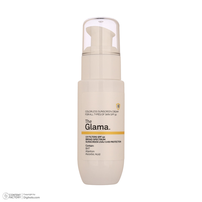 کرم ضد آفتاب بی‌رنگ دست و صورت گلاما SPF 50 مدل Broad Spectrum ‌محافظ UVA ، UVB مناسب برای انواع پوست حجم 50 میلی‌ لیتر