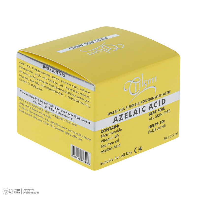 ژل ضد جوش صورت تیلسیم مدل Azelaic Acid مناسب برای پوست آکنه‌ای حجم 50 میلی‌لیتر