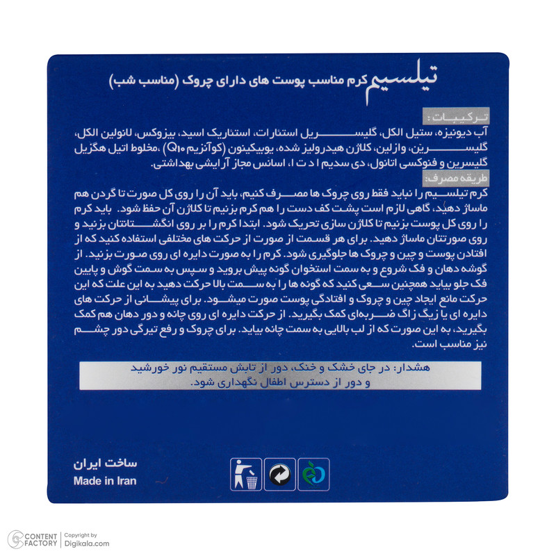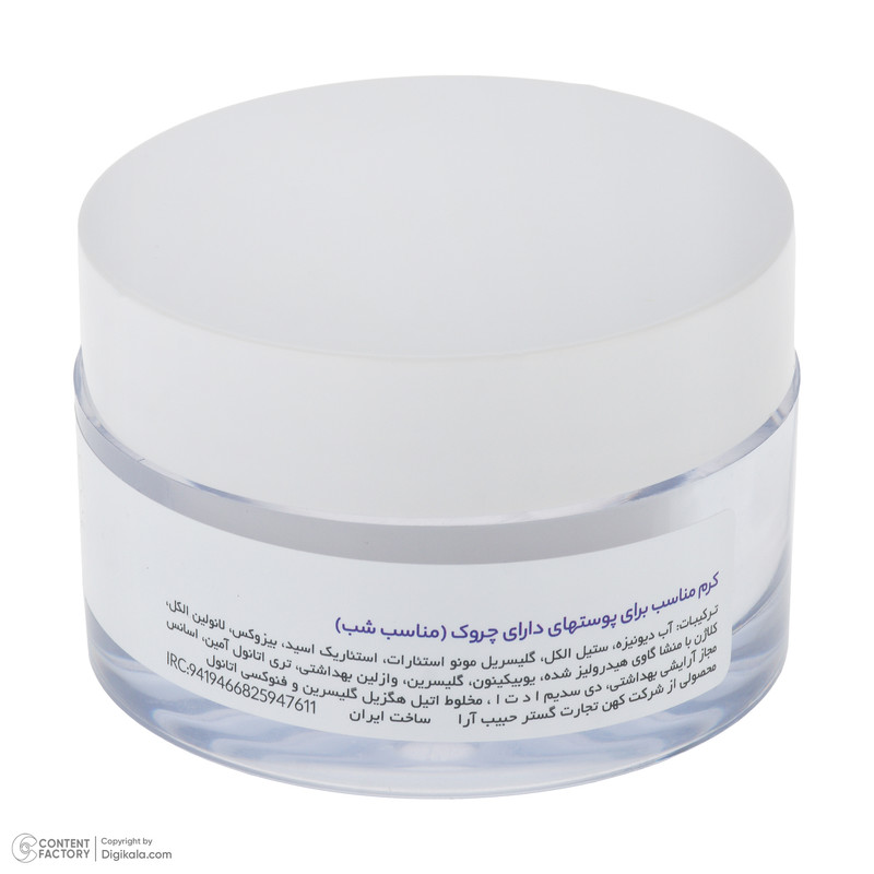 خواص کرم ضد چروک: کلاژن ساز , افزایش قابلیت ارتجاعی پوست , جوان کننده , آبرسان