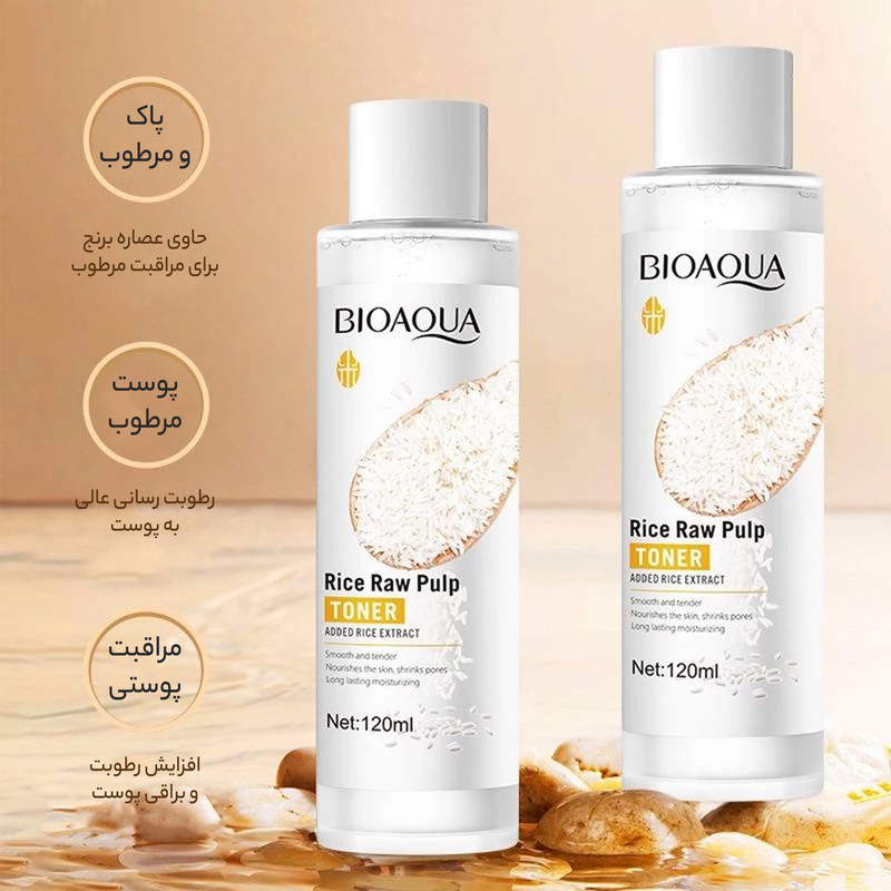 تونر برنج بیوآکوا تونری قدرتمند برای تکمیل فرآیند پاکسازی پوست صورت، تنظیم سطح PH پوست، پاکسازی اعماق منافذ و آماده سازی پوست برای دریافت محصولات و شروع روتین پوستی است. این تونر می تواند به اعماق منافذ نفوذ کرده چربی های اضافه را در خود حل کرده و آلودگی های اضافه باقیمانده پس از استفاده از شوینده را از بین ببرد. این تونر با تنظیم PH سطح پوست می تواند تاثیر گذاری سایر محصولات پوستی مثل سرم ها و… را چند برابر کند.