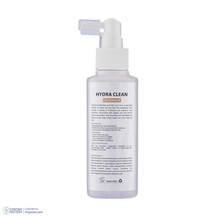 تونیک تقویت کننده و ضد ریزش مو سر هدراکلین مدل FACEDOUX مناسب موهای نازک و ضعیف حجم 100 میلی‌لیتر